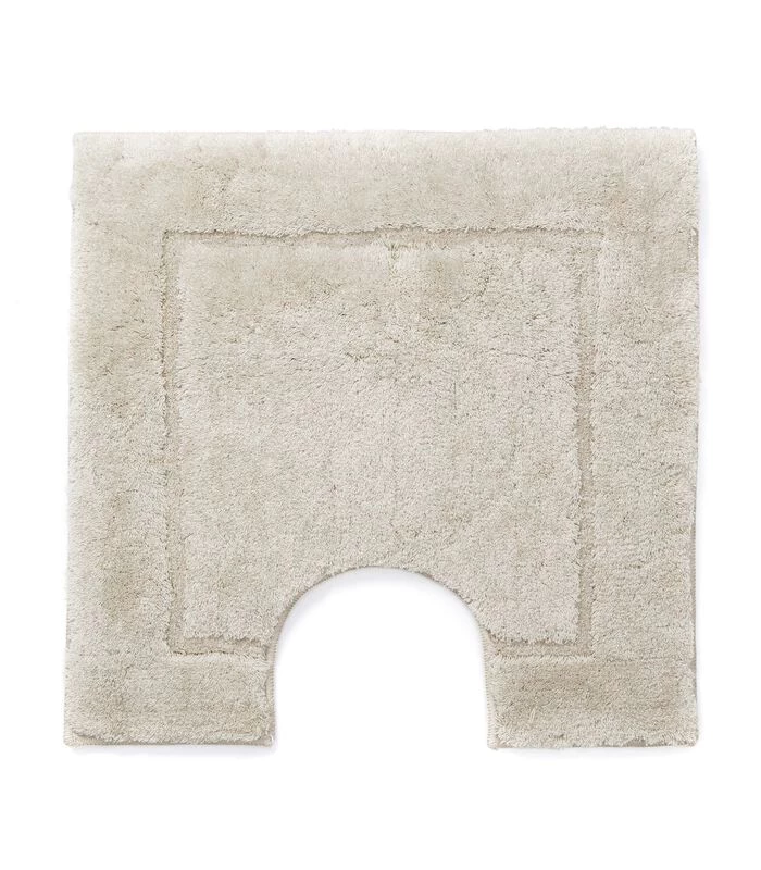 Deze tijdloze WC mat met uitsparing is hoogpolig en voelt heerlijk zacht aan de voeten. De mat is gemaakt van hoogwaardig acryl garen. Deze kwaliteit behoudt steeds mooi zijn volume, vorm en kleur. De anti–sliplaag zorgt ervoor dat de mat prima blijft liggen. De mat heeft een subtiel kader door de hoog/laag poolhoogte.