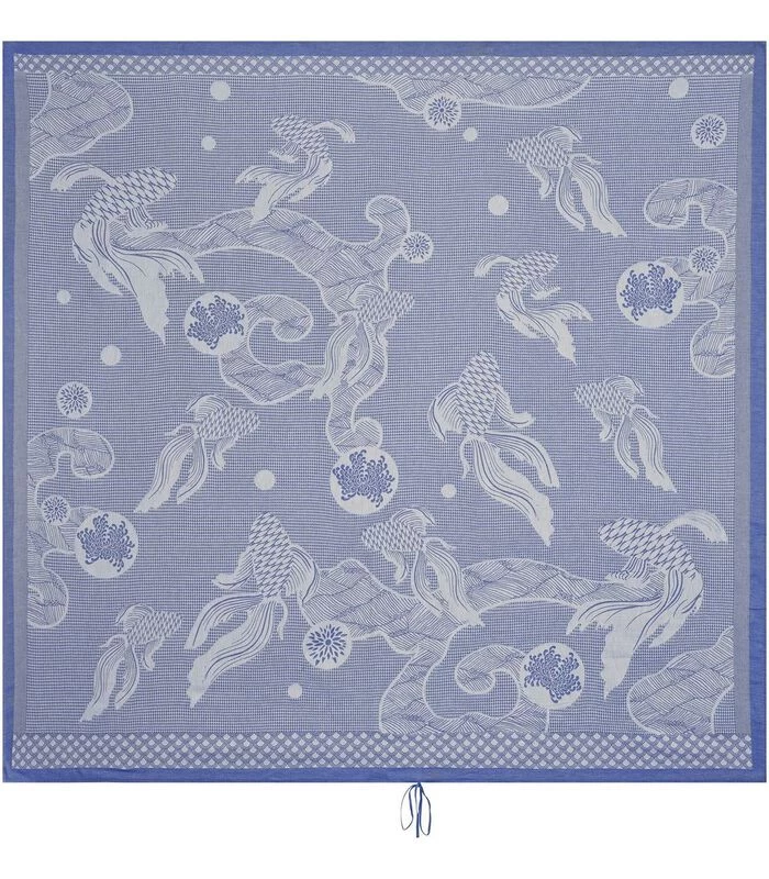 Duik in het diepe blauw met het Oceanic strandlaken. Het delicate silhouet van de Japanse vis en de aquatische blauwtinten creëren een poëtische sfeer en nodigen uit tot dagdromen.